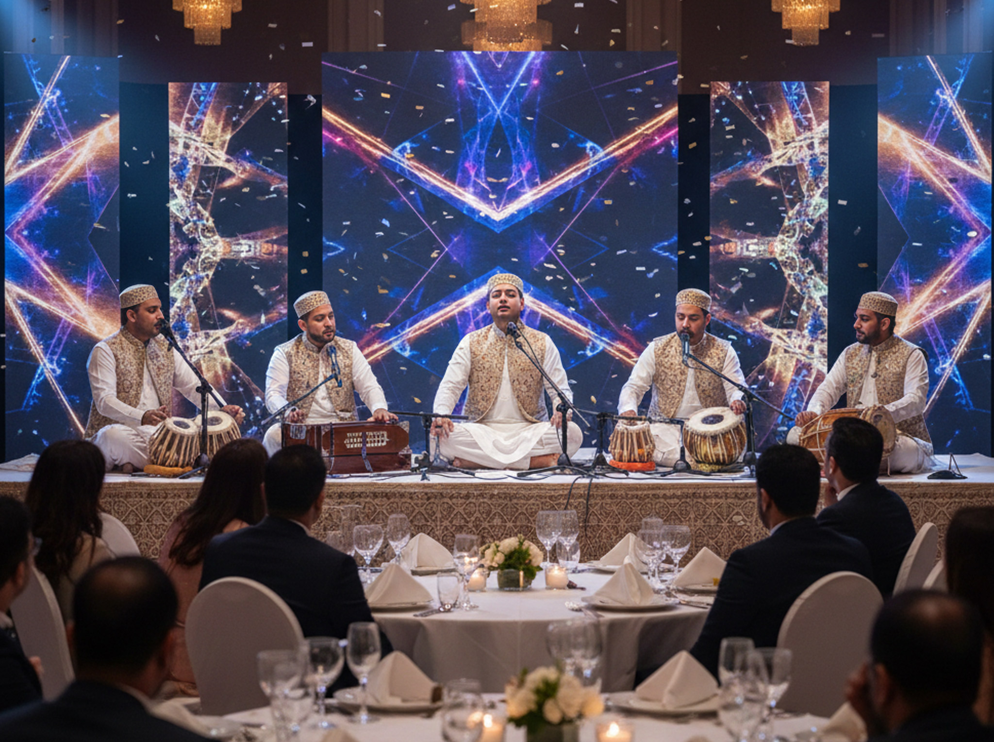 Our qawwal groups deliver powerful vocals, live instrumentation, and authentic stage presence, creating a grand and spiritually rich experience for audiences.
